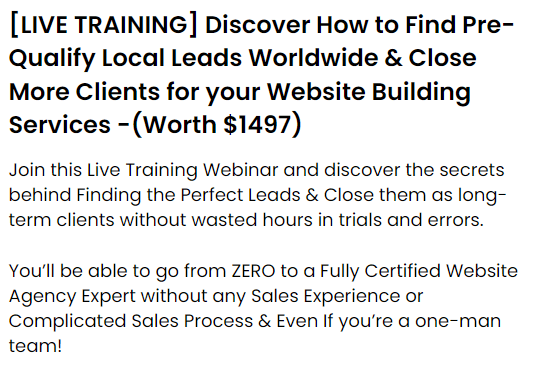 [LIVE TRAINING] Discover How to Find Pre-Qualify Local Leads Worldwide & Close More Clients for your Website Building Services